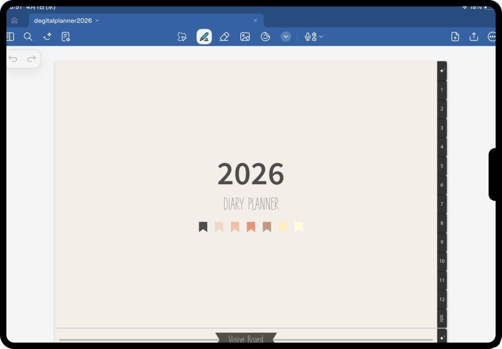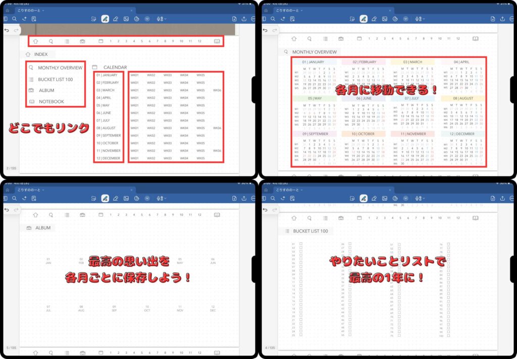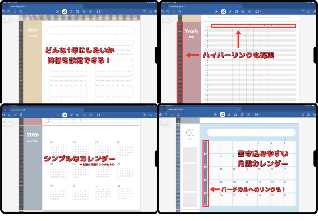 圧倒的なページ数と、ハイパーリンクの充実度が魅力のデジタルプランナーです。