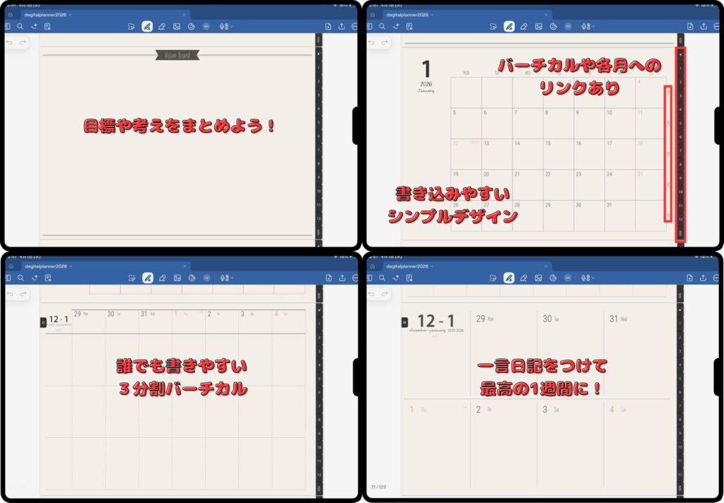 圧倒的なページ数と、シンプルで使いやすい設計が魅力のデジタルプランナーです。