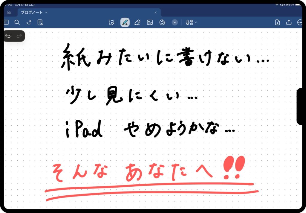 ペンだとキレイに書けるのに、なんでiPadだとちょっとビミョーな字になるんだろう、、、