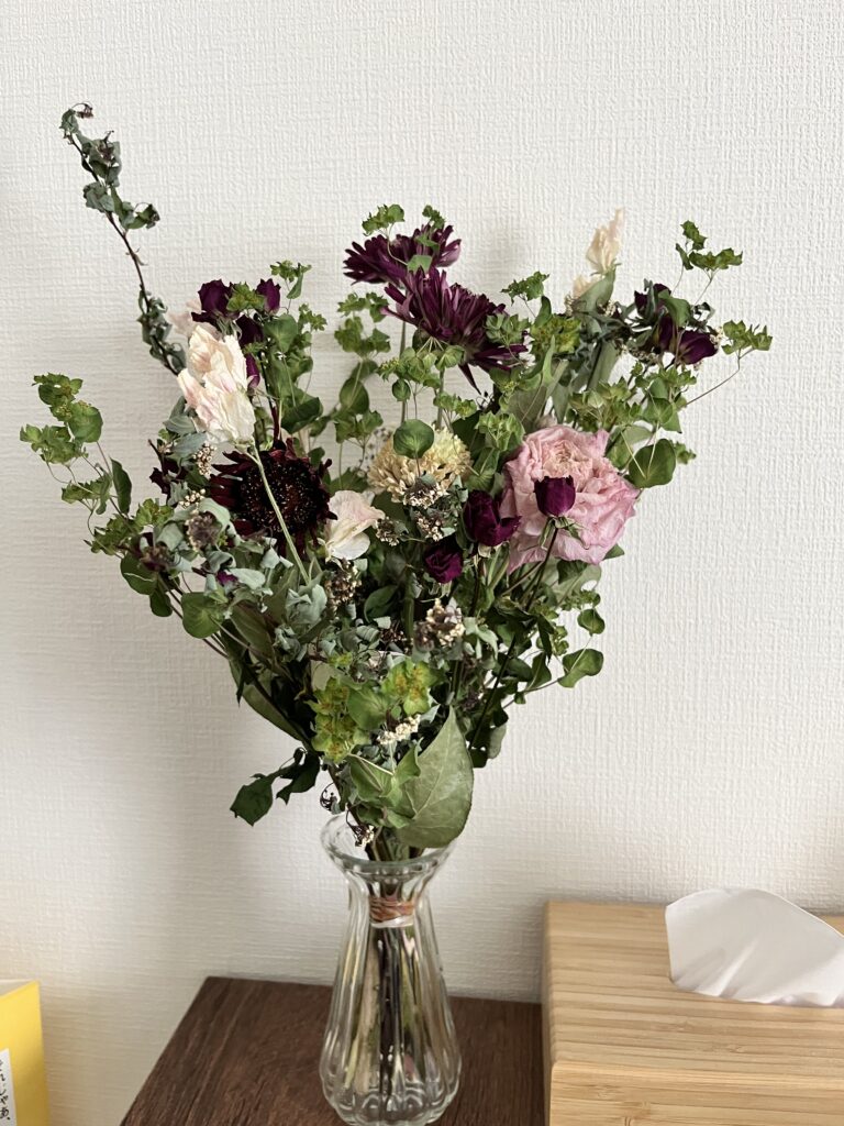 妻が生花からドライフラワーを作ってくれて、部屋に彩りが出て感動しました!